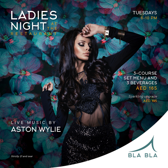 Bla Bla Dubai Dubai, United Arab EmiratesLadies night dinner in the restaurant, every Tuesday ladies enjoy a 3-course set menu and 3 drinks for AED 165 pp.