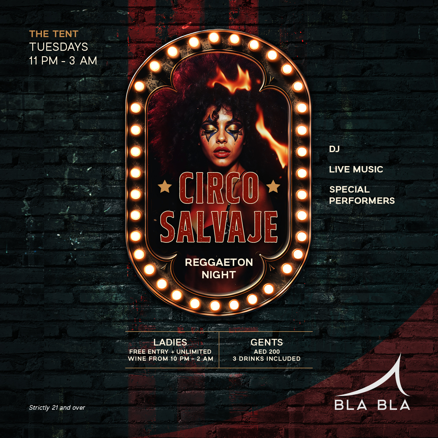 Join us every Tuesday for Carnival-inspired Reggaeton nights every Tuesday at The Tent. CIRCO SALVAJE…